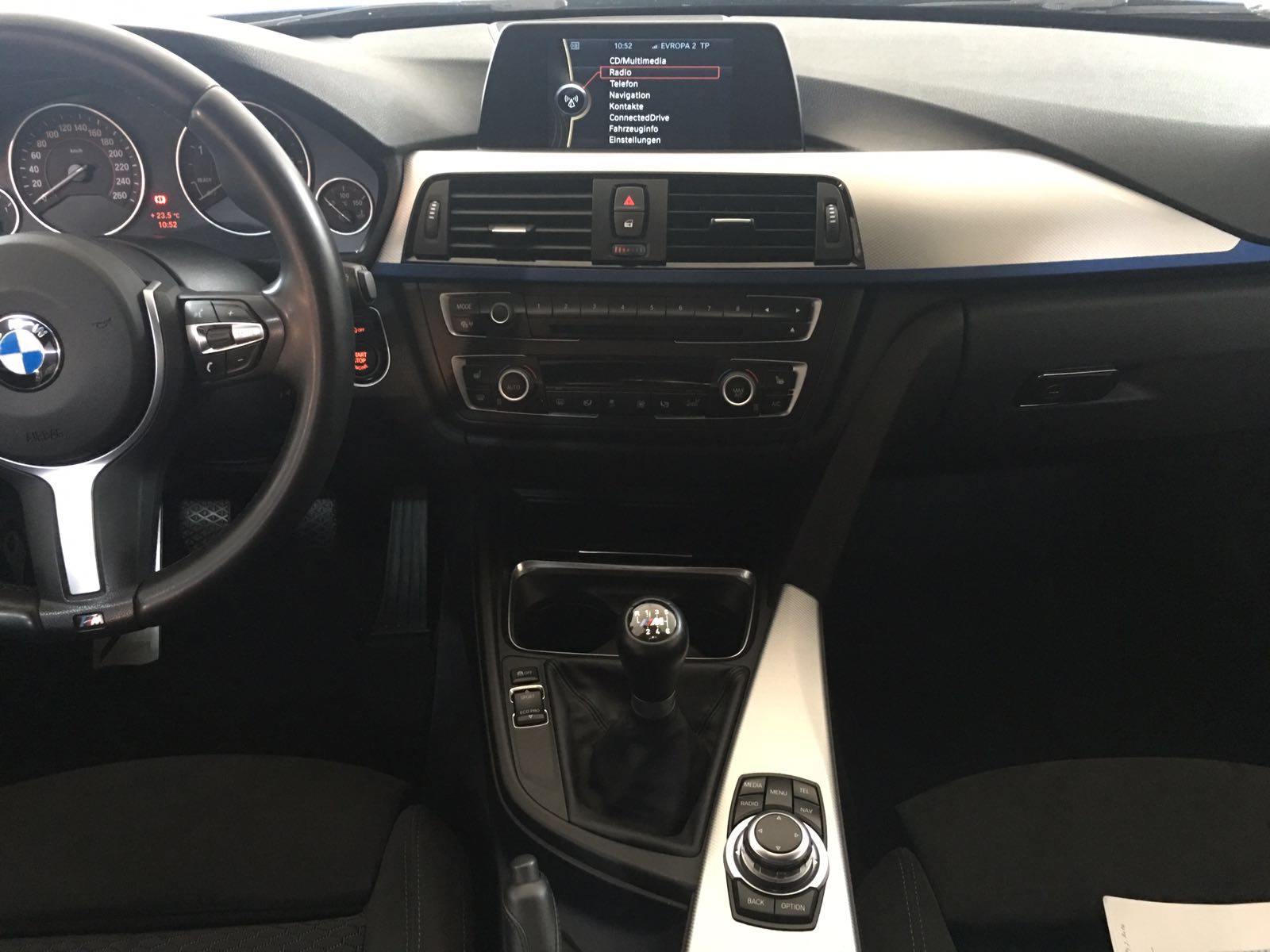 Přestavba navigace BMW CIC Business na systém NBT u BMW 330d typ F31, dále dodělání zadní kamery, tempomatu, automatických světel a dešťového senzoru.